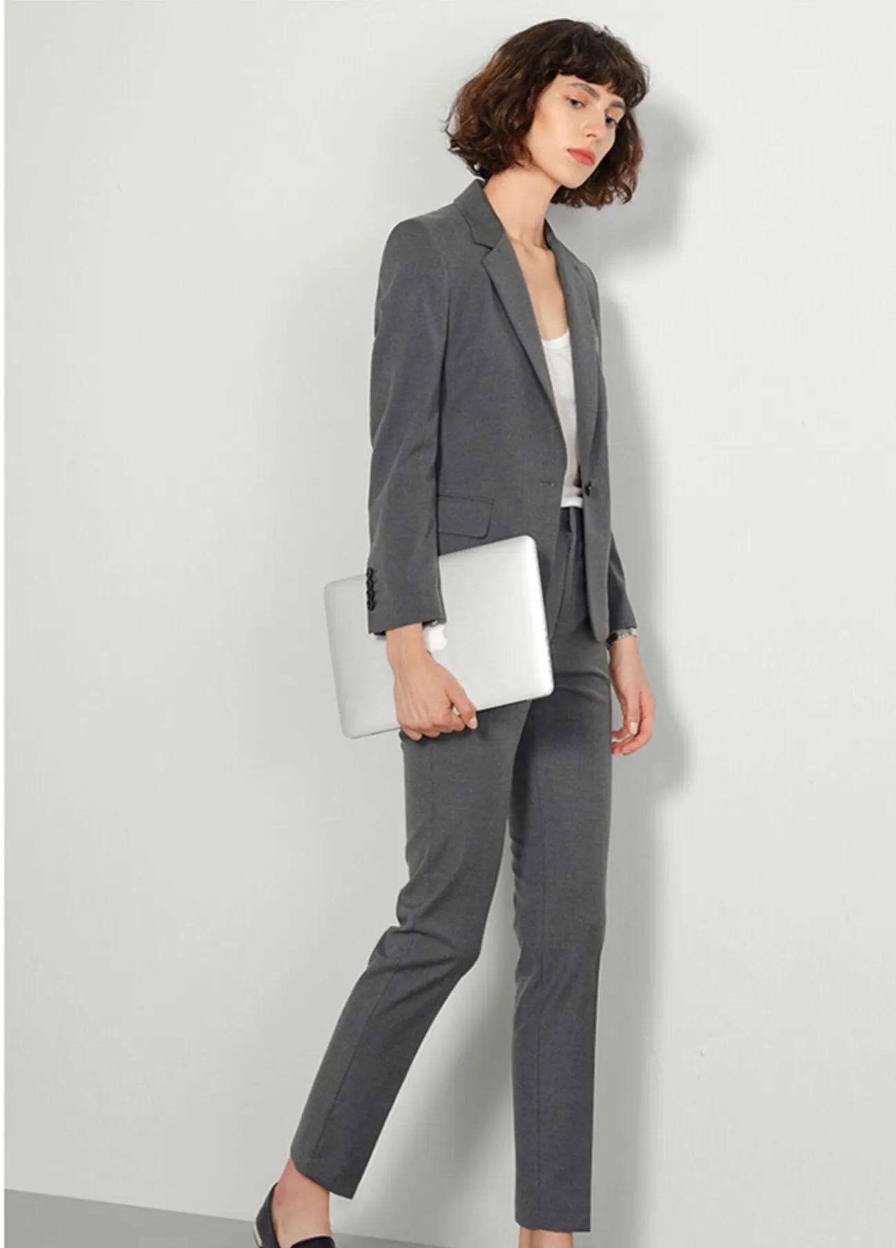 正确的做法如下,我们一般常见的女士正装多以黑色西装外套+黑色西装裤+白色衬衣为主,这是正式场合的标配。而且正装不宜过于宽松肥大,也不建议修身+贴身,得体合身就可以了。以下是几种常见的正装示范。
