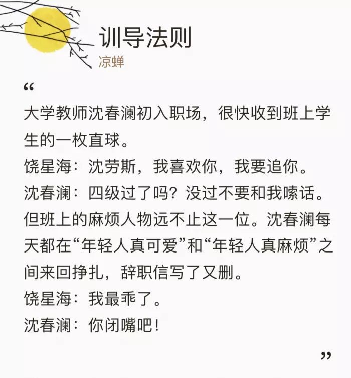 不同于前几本,这本小说和现实生活更相似,还有校园嗑cp写同人环节。