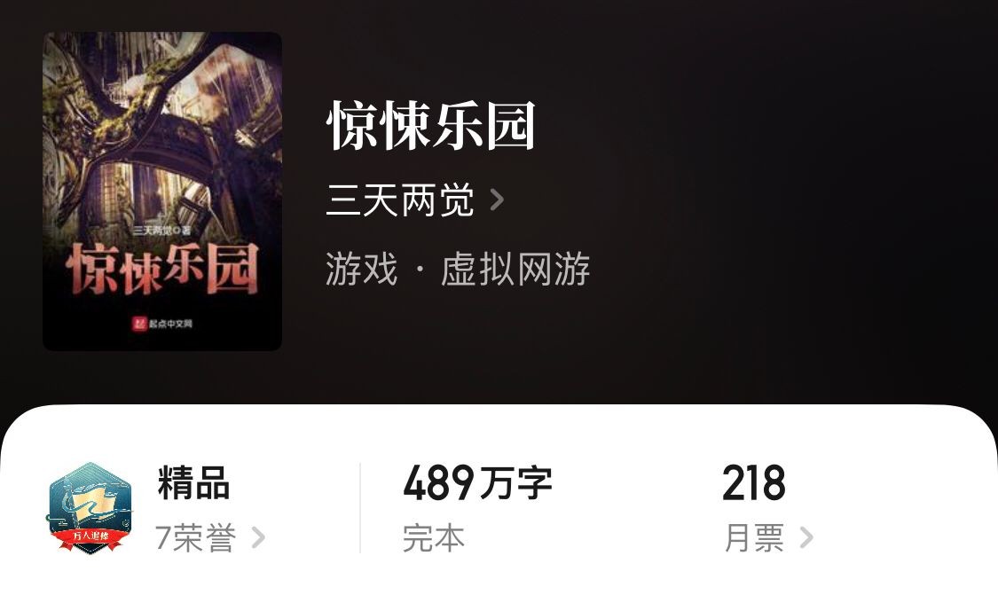 文章的最后,就以三天两觉的这本经典的惊悚乐园镇楼吧。这本书可以说是脑洞文当中的战斗机了。觉哥控制剧情与人物的手法令人赞叹,男主封不觉更是令人印象十分深刻。