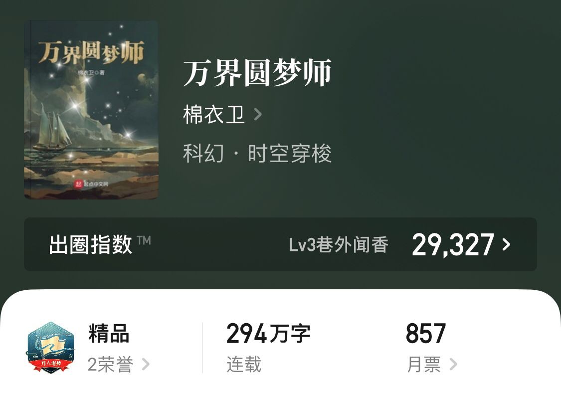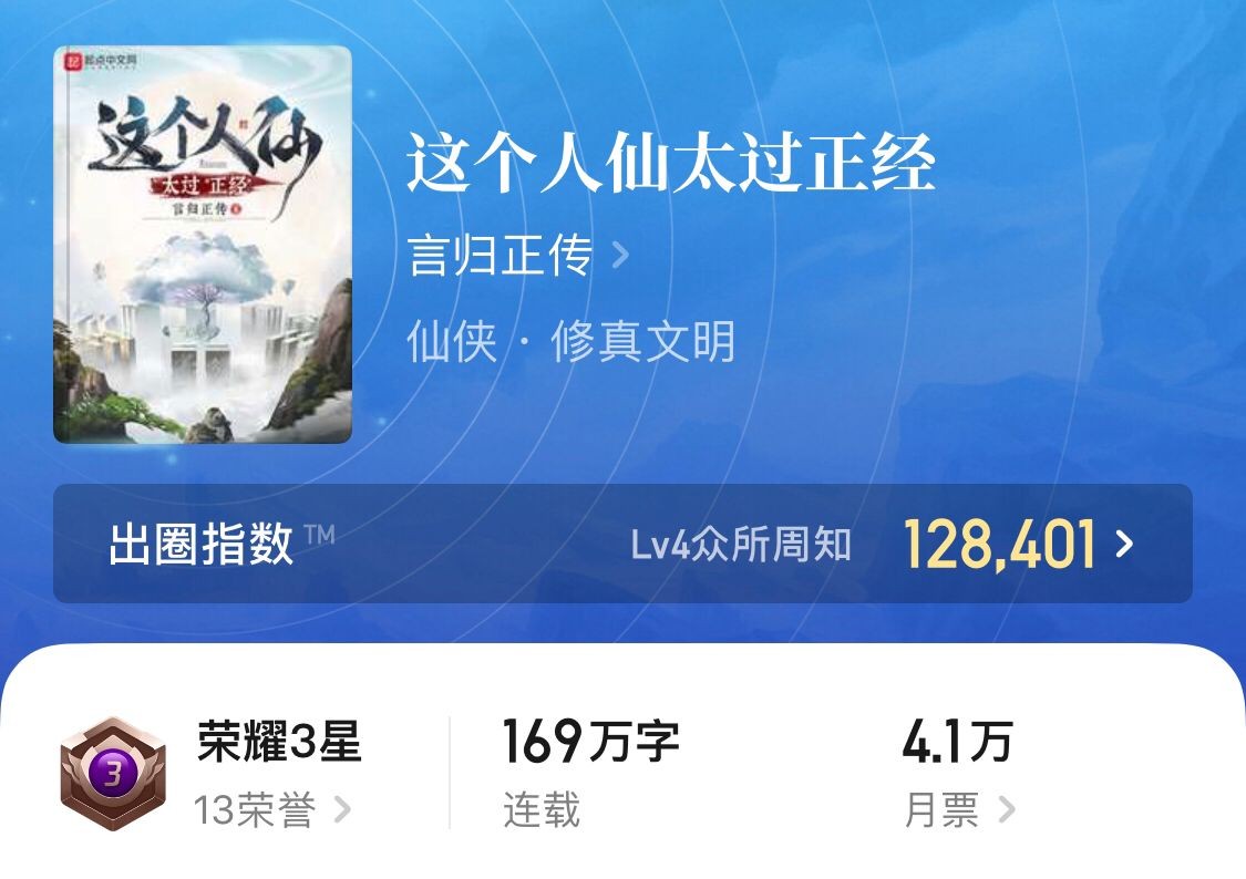 PS:这本书可以说是近期看到的相当不错的一本仙侠文,书的剧情、节奏以及人物都很对味。唯一的问题是作者身体不太好,更新较慢,连载党老铁们可以养一阵看一阵。