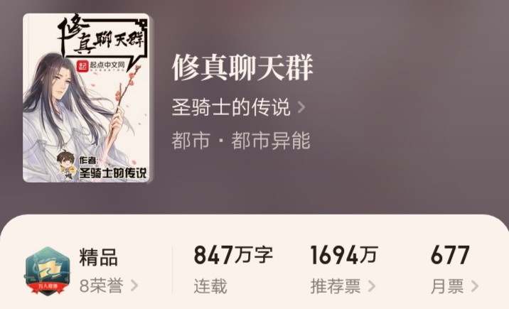 【简评】聊天流的开山之作,圣骑士传说的封神之作。一本都市修仙文,讲述了主角宋书航意外进入一个充满神仙的聊天群,从此走上了另类修真的道路。剧情新颖,爽点十足,轻松搞笑,深受读者们喜爱。2017年起点年度作品之一。