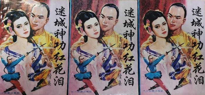 另外署名红花客的《迷城神功红花泪》,与其他各续书不同,不以陈家洛为主角,而是写陈家洛后代的故事,算是别树一帜。只是此书作者虽然极力摹仿原著,无奈才气稍逊,成就亦自有限,尤其是在书中大段抄袭《飞狐外传》中的情节文字,更是落了下乘。