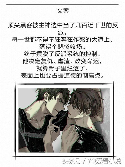 YQ简评:天才少年黑客周允晟被主神挑中去各个世界扮演大反派。被各个位面的男女主虐的死去又活来,他终于找到了解脱的办法,脱离了系统的控制,于是重新穿回各个世界去打脸原来的白莲花。攻都是一个人,有可能是原来的男主也有可能原来的路人。最后回到自己位面时才知道攻是一串数据,可以消灭“主神”的数据。主神想通过吸收能量来统治世界,最后当然是消灭了主神,攻也有了身体,结局圆满。文中的周允晟人设巨苏啊,穿越世界打脸白莲花什么巨爽。作者文笔也不错,行文通畅,是比较经典的快穿文了,没什么大bug,剧情一路打脸看的很爽。一共有十几个不同的世界,可看度很高,强推!