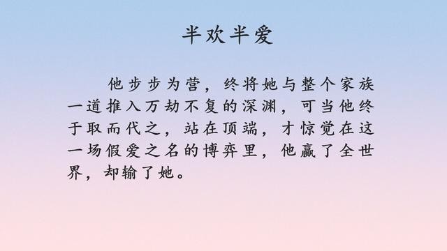 今天为大家推荐蓝白色的3本完结小说,文字简洁通透,文笔淡然,张弛有度,细腻处委婉动人,《步步错》《无爱承欢》《半欢半爱》都好看,强烈推荐!