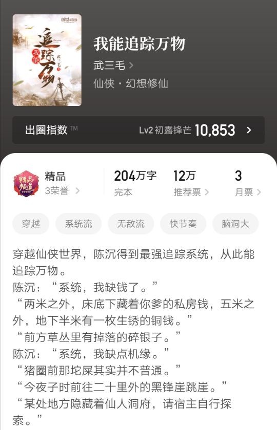 无敌系统搞笑小说,穿越异界十六年的主角陈沉,终于等到了迟来的外挂,一个可以追踪万物的系统,在系统还是一级时只能追踪十米距离没的物品,但是不限制次数,升级后将有无限可能。这书我以前推荐搞笑小说,介绍过一次,现在还记得当他想要反击敌人(这是一个仙侠世界,有飞剑那种),利用唯一一次系统奖励,无视等级追踪县城范围内任何物品时,系统给出的那千奇百怪的线索,能令人捧腹大笑。