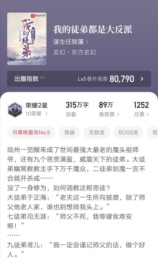 且看陆州大魔头调教徒弟,站在修行界最高峰,大杀四方。智商在线,除了系统这个,其他套路的地方很少,行文幽默搞笑,情节引人入胜,无敌流爽文。连载中。