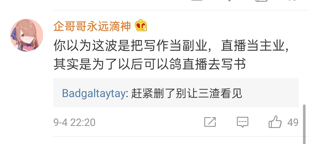 3、你以为这波是把写作当副业,直播当主业,其实是为了以后可以鸽直播去写书