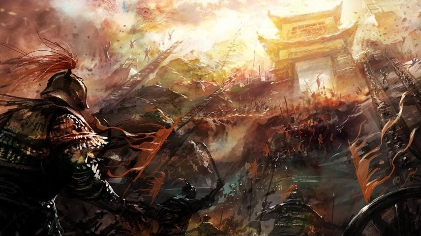 熊熊烈火烧得咧咧作响,铿锵乒乓的武器碰撞声连绵不绝,此起彼伏的惨叫怒骂声不绝于耳。最先接触的是彼此拿着盾牌的军士,还有漫天飞舞的带着寒芒的利箭。