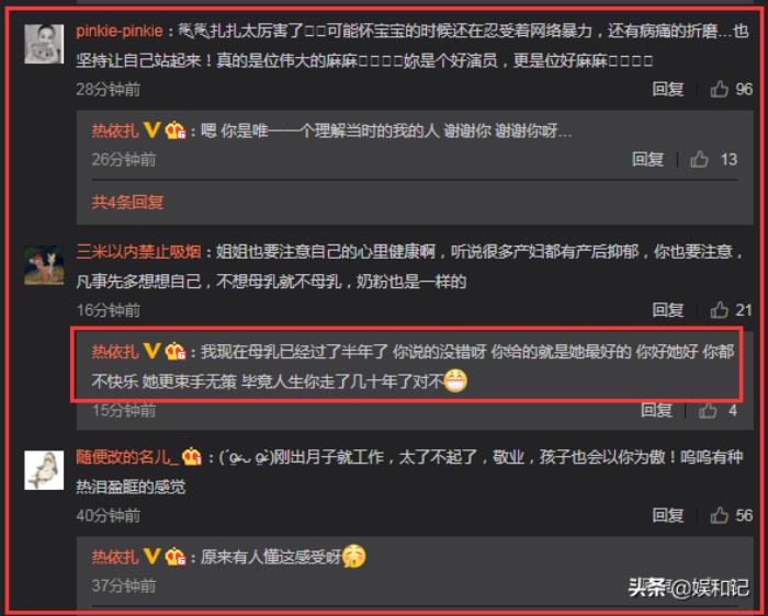 有粉丝在评论区质疑热依扎孩子是不是她的,热依扎则回复:出了月子就带娃拍戏了!
