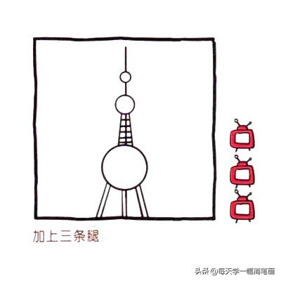 每天学一幅简笔画-东方明珠电视塔简笔画的画法步骤