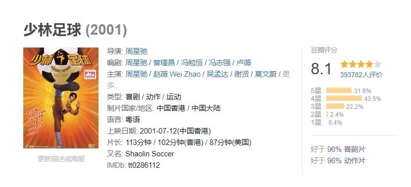 5. 《少林足球》豆瓣评分:8.1分
