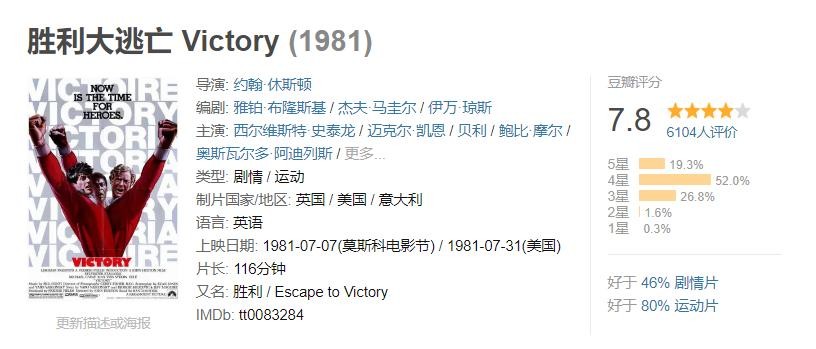 7. 《胜利大逃亡》豆瓣评分:7.8分