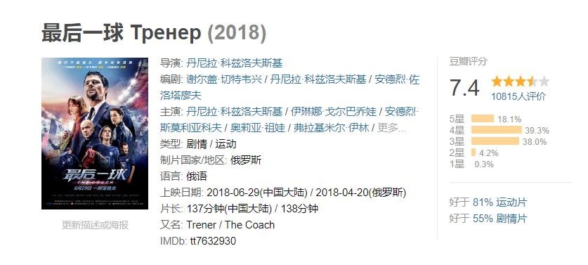10. 《最后一球》豆瓣评分:7.4分