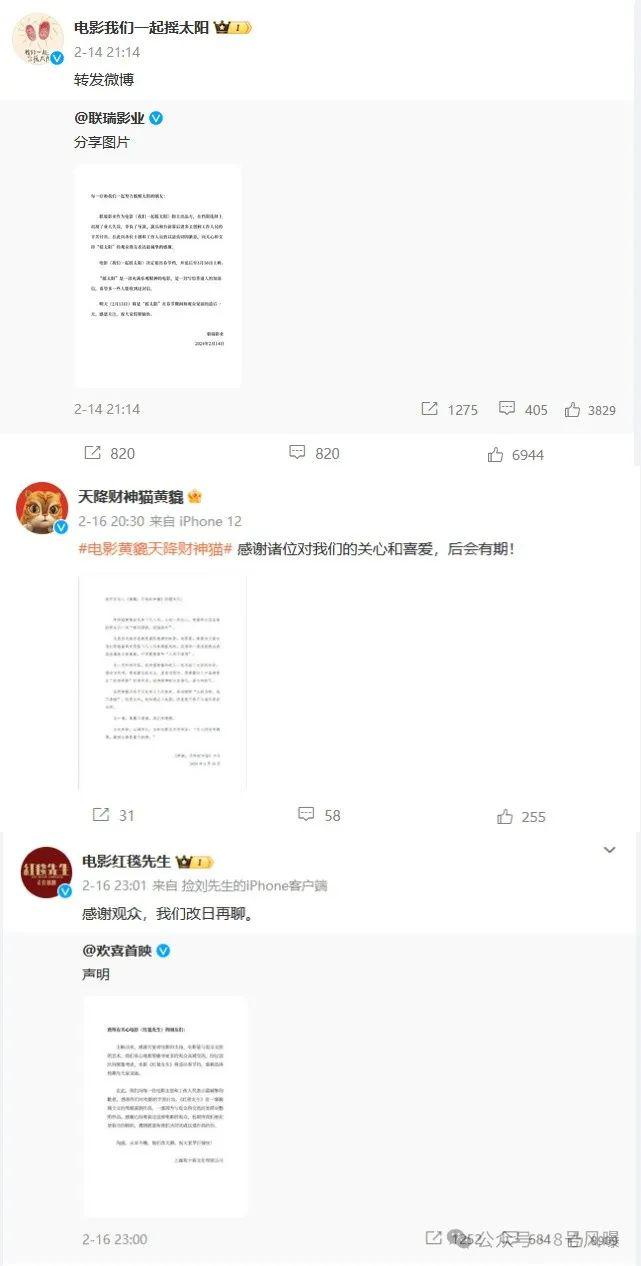 此前,《我们一起摇太阳》《黄貔:天降财神猫》《红毯先生》也先后宣布退出春节档。