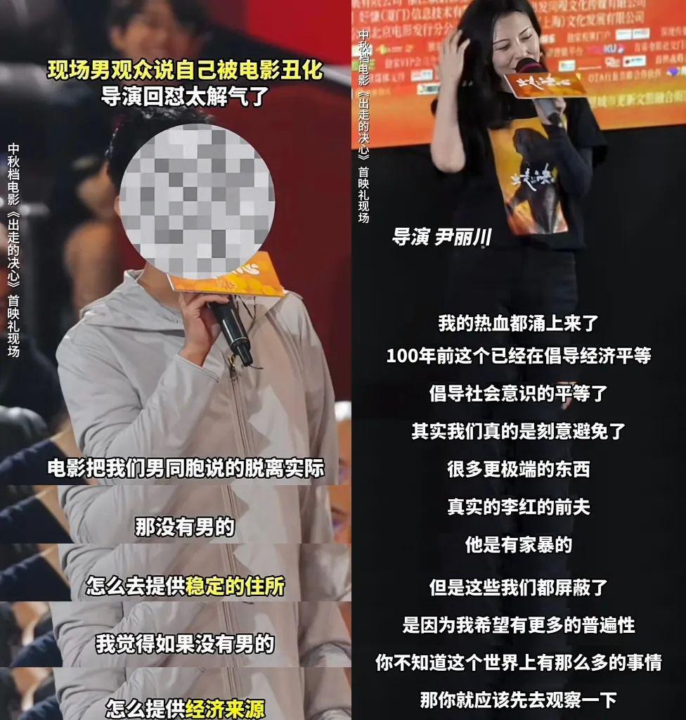 映后一位男观众表示,电影把男性刻画得 " 脱离实际 ",没有男的怎么能提供稳定的住所、怎么提供经济来源、怎么生育小孩。