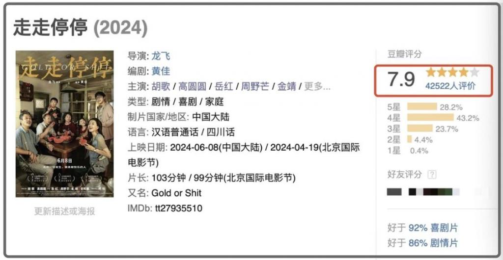 有一部国产电影却意外地受到好评,以7.9 分的高分领跑这个档期。