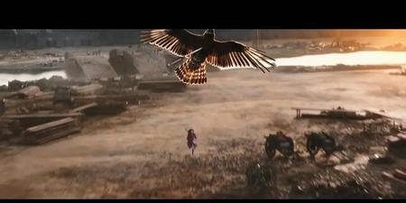 然后就为了救木兰,被箭射死了。看上一张图,女巫人形是刀枪不入的,为了让她壮烈牺牲,导演故意让她化成鹰去挡箭,佩服佩服!