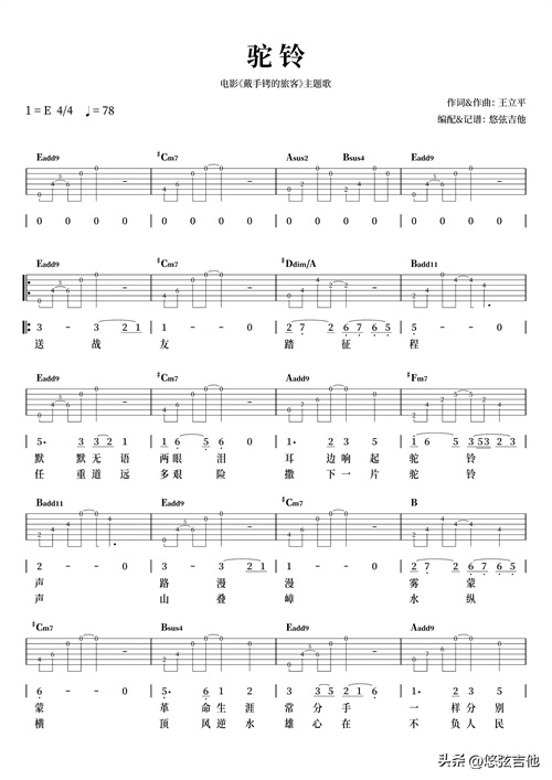 《驼铃》吉他弹唱曲谱分享