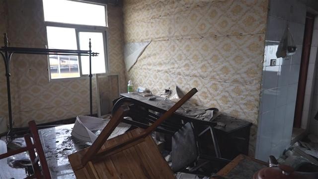 大火虽然扑灭,但房屋内已是一片狼藉,不能再住人,吴新民和老伴到楼下儿子家里暂时休整。