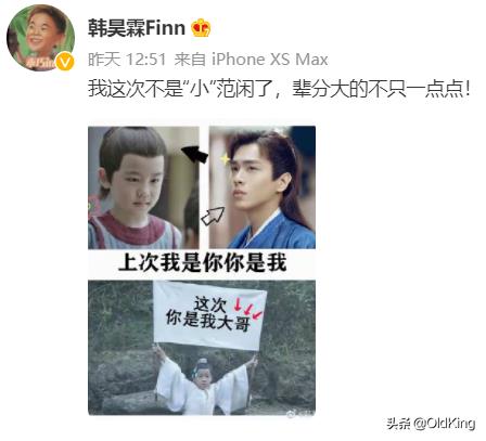 近期官微及各主演也陆续发布各种预告来预热,其中在《庆余年》中饰演小范闲的小演员韩昊霖发了条“这次我不是小范闲了,辈分大了不止一点点”,并附上庆余年里他跟张若昀的剧照,注明“上次我是你你是我”,下面一张雪中的剧照图,小昊霖手举白旗上书“这次你是我大哥”。