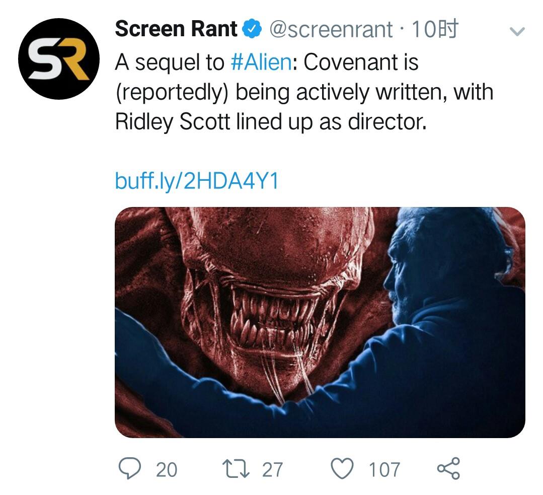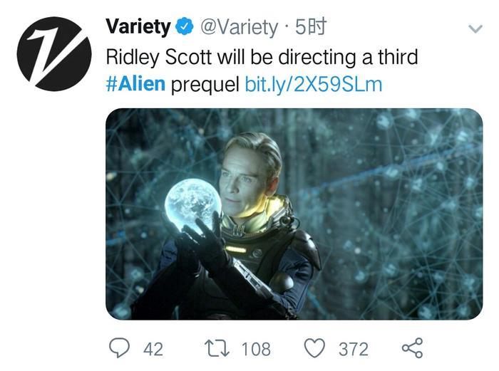 太棒!《异形》前传第三部要来了!据报导第三部的剧本已经在创作中,而前两部《普罗米修斯》和《契约》的导演雷德利·斯科特也将继续执导!前两部的主演们在接受采访的时候也说愿意回归第三部!无比期待!?