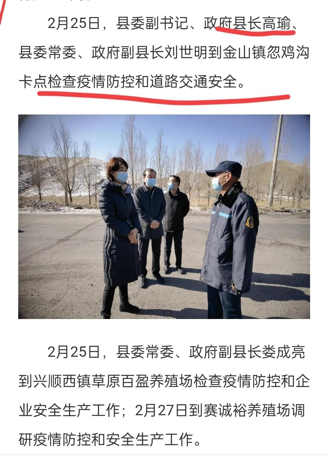 高瑜担任县长期间工作成绩可圈可点,疫情期间,她本人更是深入一线,亲自检查疫情防控和道路交通安全,心系群众生活生产,帮助百姓度过难关。