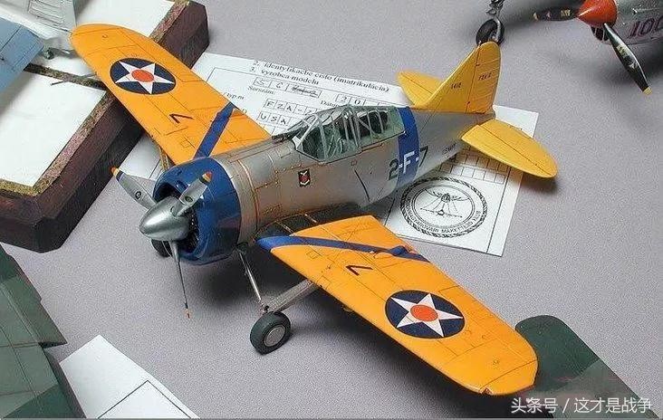 这是一架列克星敦战斗机队早期装备的F2A水牛型战斗机,可以看到列克星敦机队普遍使用的黄色识别色