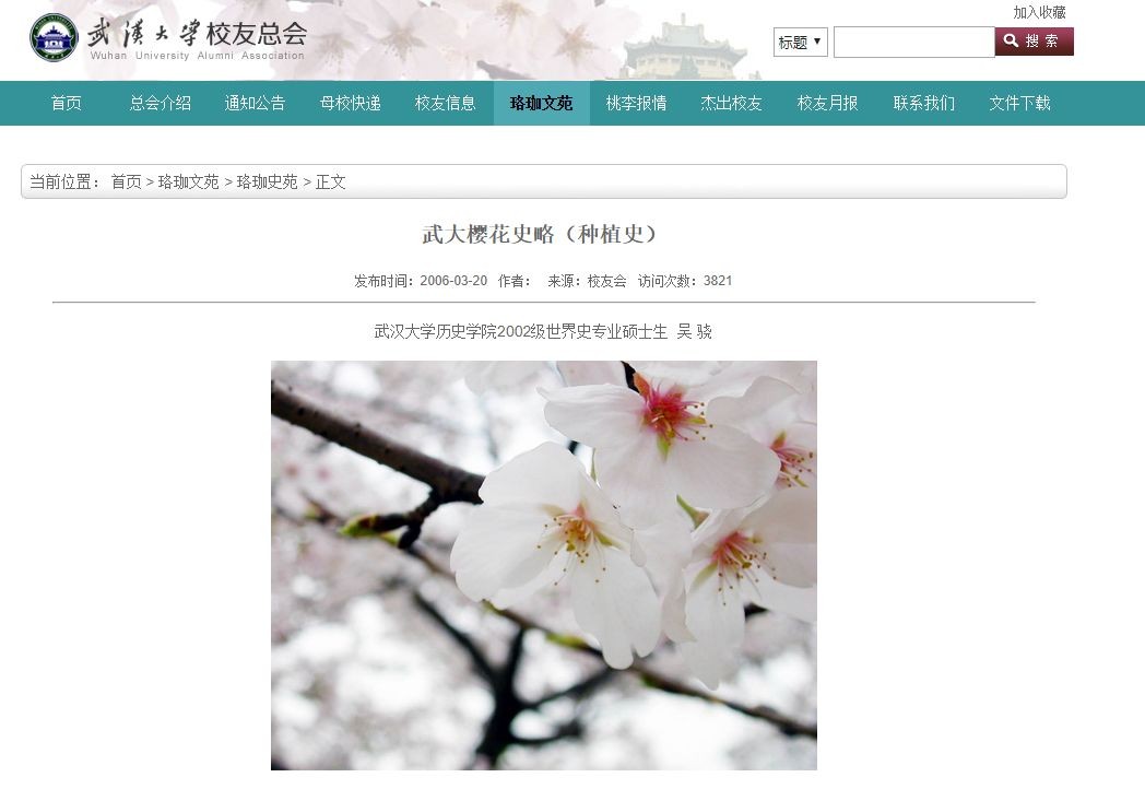 据了解,武大最早一批樱花树苗是1939年从日本引进的,可以说是日本侵华的罪证、国耻的象征;同时也是今日武大樱花的缘起。