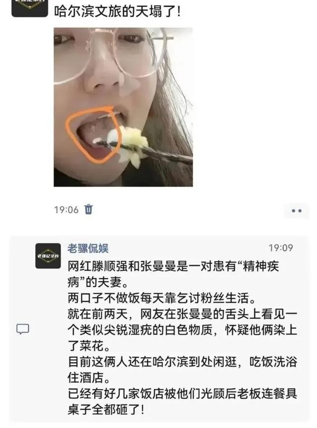 据报道,这对网红夫妇在哈尔滨的各大餐厅、酒店频繁现身,享受美食的同时,也悄然成为了众矢之的。有网友在社交平台上曝出,女网红的舌头上似乎长有“菜花”状异物,这一消息迅速传开,如同病毒般肆虐整个哈尔滨的餐饮界。