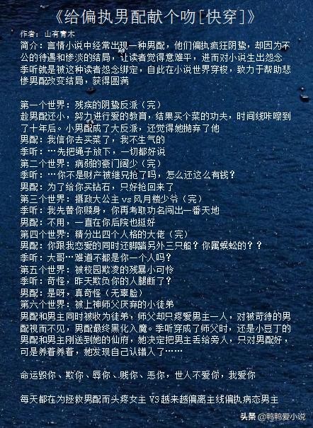 男主是病娇的快穿文:《穿成男主白月光怎么破》《撩尽天下病娇》