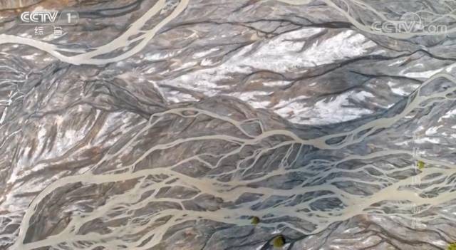 从高空看,它色彩极为丰富。河流将不同颜色的砂岩和泥岩冲刷溶解,形成了一幅大地抽象画。