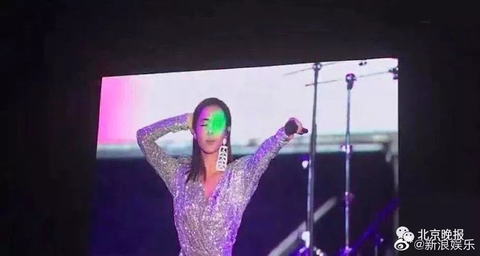 5月25日晚,蔡依林在台上演唱,她的脸上不时晃过绿色的光束。一开始,蔡依林还强睁着眼躲闪,但后来,光照在脸上时间过长,导致她不得不闭着眼睛唱歌。
