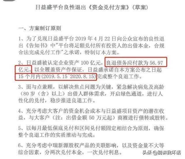2019年4月,日益盛发公告称公司平台要进行良退,简单来说就是投资平台不运营了,会退钱给把钱放在平台上的客户们,但却没有写清退钱时间。