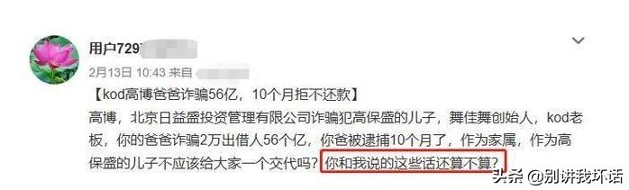 该名网友认为,高博之前私信回复他,只不过是为了稳住他,让所有投资者不要曝光这事。因为那时候高博还在上《这就是街舞2》。