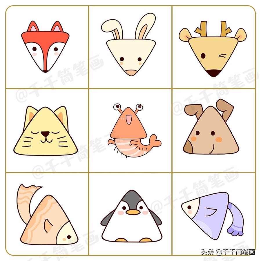 只用三角形就画出99个可爱小动物简笔画,快为孩子收藏起来吧