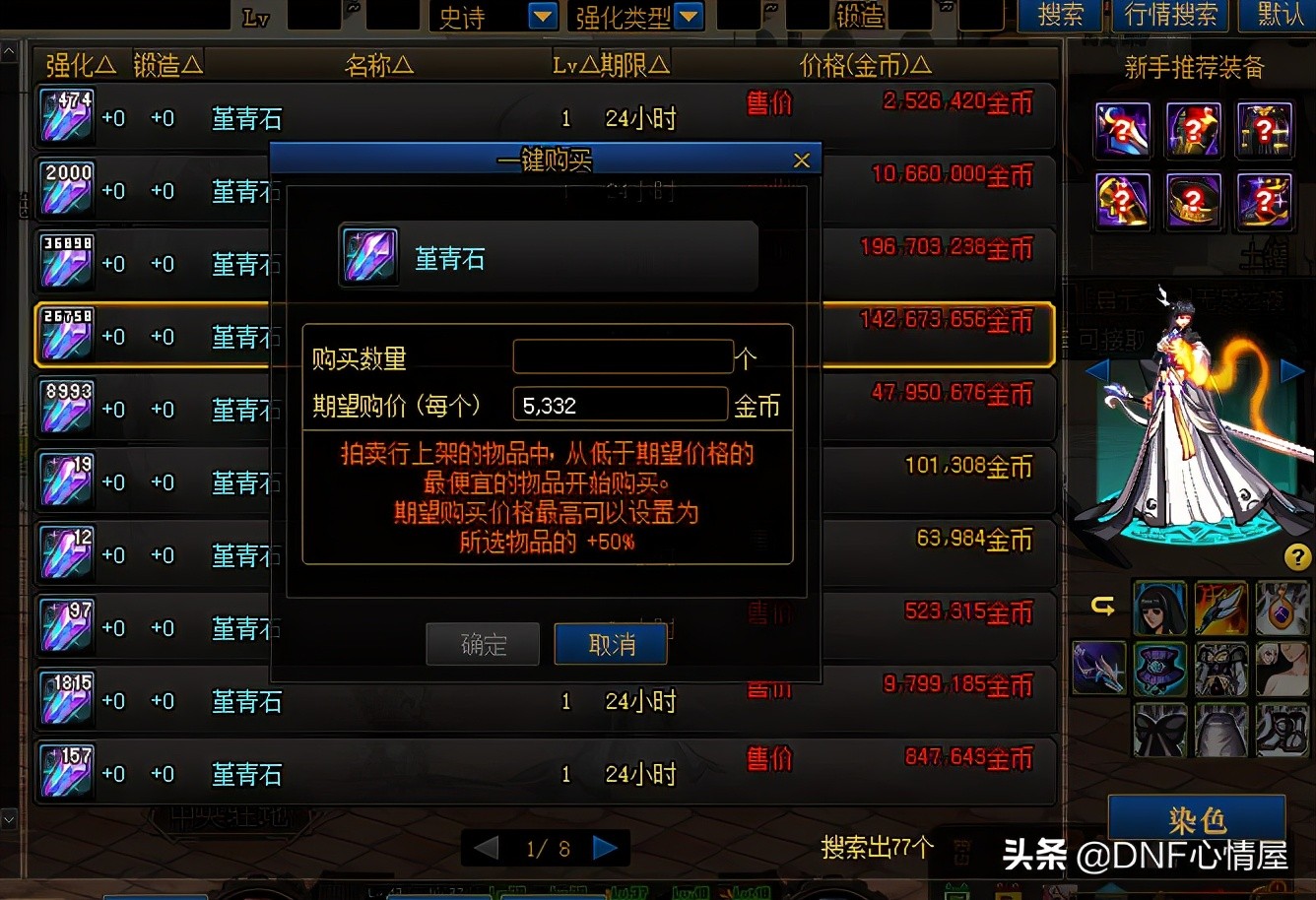 其实,这比较的好理解,举个简单的例子,你要购买堇青石材料,设定“期望购价”和数量就行!当然,拍卖行上没有低于期望价格的堇青石,那就会购买失败!这个功能挺方便的,能节省些时间,对玩家来说挺不错。