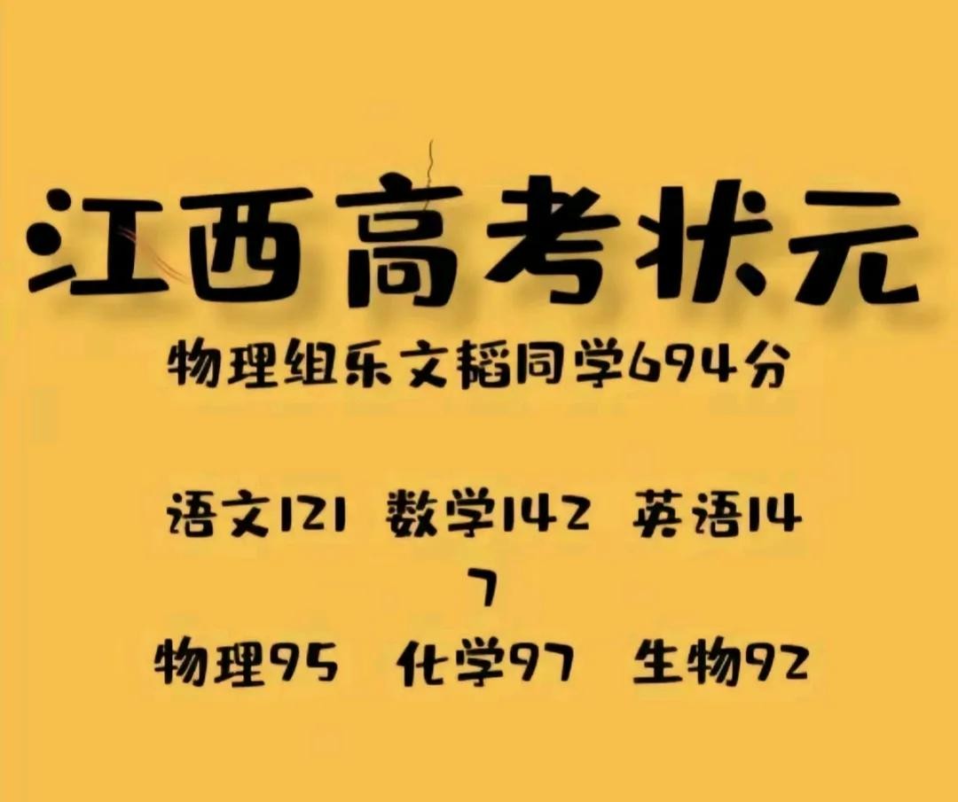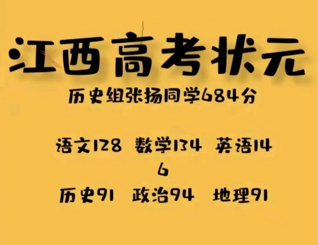 江西省2024年高考状元:文科状元684分,理科状元694分!