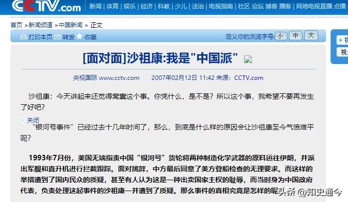央视网在2007年2月12日关于《沙祖康:我是“中国派”》报道