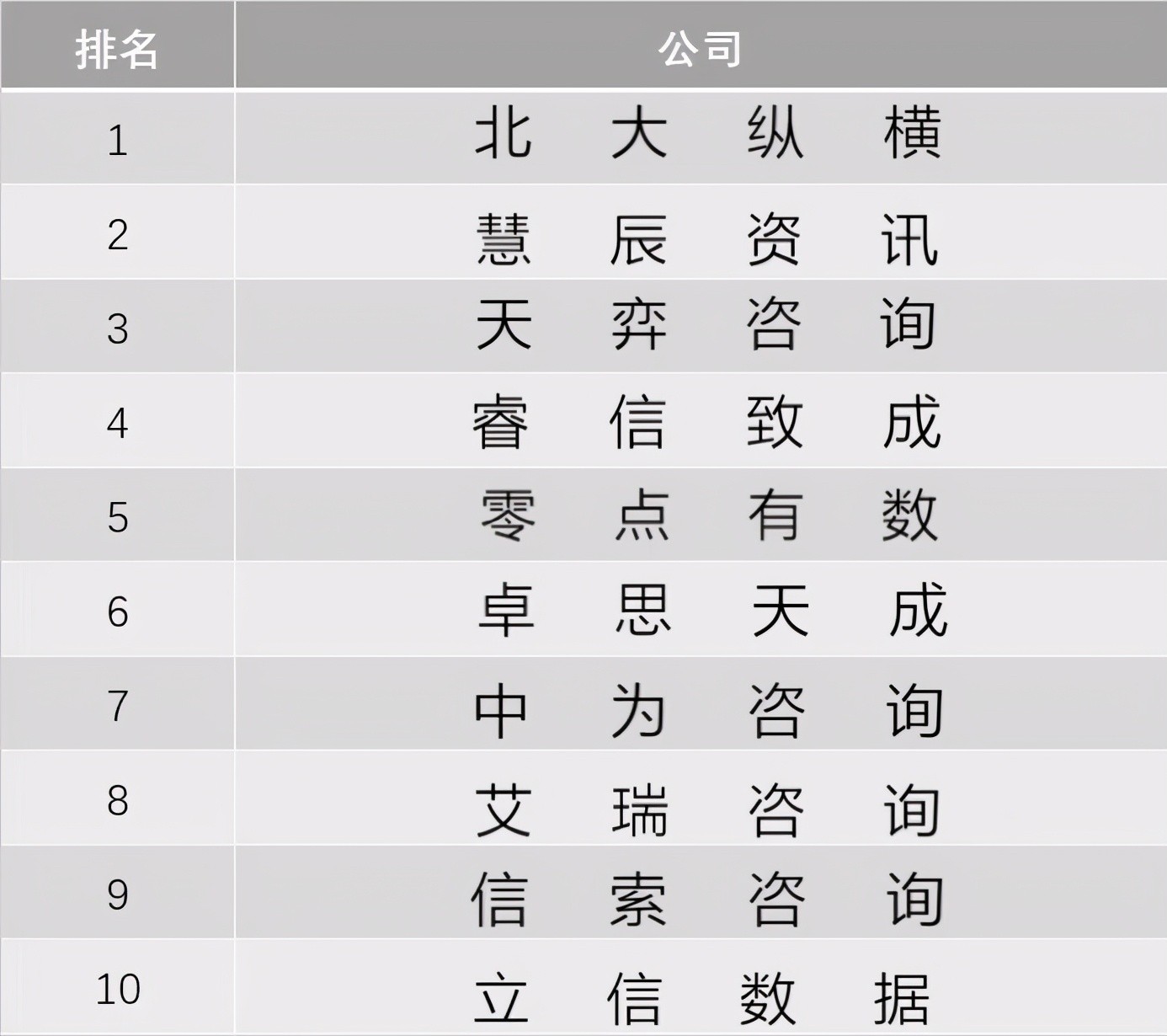 4.睿信致成:团队历经十余年的成长,千个以上案例的积累,已建立了自己强大的行业数据库、专家库资源。睿信致成与国际顶级咨询公司麦肯锡、波士顿等公司共享专家库资源,为客户战略规划、绩效改善、管理提升、兼并收购等项目提供了有力的支持。
