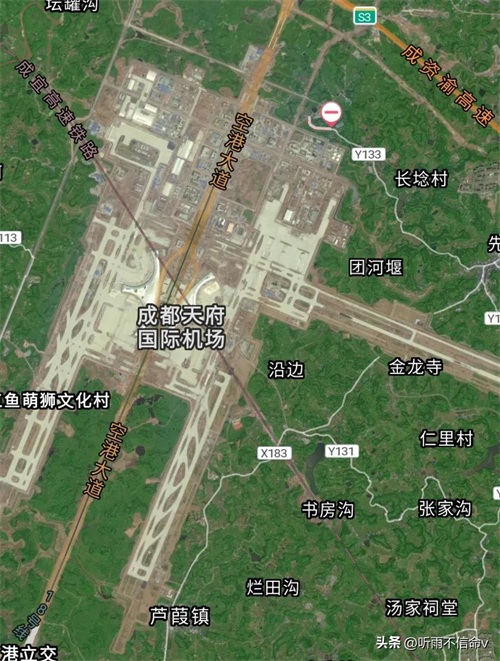 天府机场距离天府新区科学城约35公里,离天府广场约52公里,离双流机场55公里,离简阳11公里,离资阳24公里。可通过地铁18号线、19号线和S3线以及天府国际机场高速、成宜高速到达。