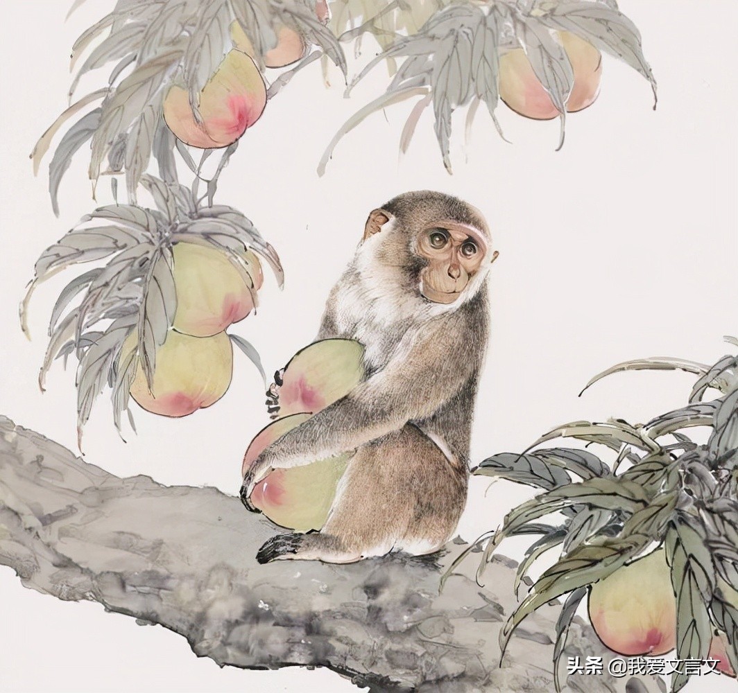 楚国有一个靠养猕猴谋生的人,楚国人叫他狙公。每天早上,狙公一定在庭院中给猕猴们分配任务,让老猴率领其它猕猴到山里去,采摘植物的果实。狙公拿走十分之一的果实来供养自己,有的猕猴不给,狙公就用鞭子抽打。猕猴们都很害怕并深受其苦,不敢违抗狙公。