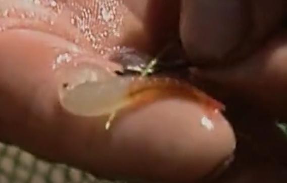 将这些“怪虾”带回水产站之后,殷建平仔细地观察了一下这些“怪虾”,他发现,这些小家伙个体每只长约3至4厘米,身体上半部分呈透明的白色,下半身则呈鲜艳的橘红色。