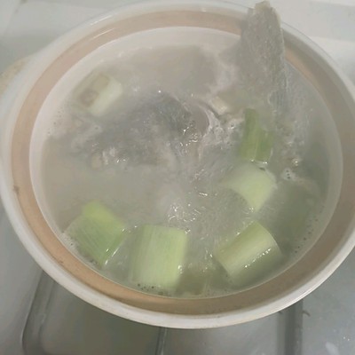 3、再将鱼头鱼尾汤转到砂锅,继续煮3-5分钟。鱼汤会慢慢地变成白色。