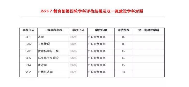 下面是广东财经大学全国第四轮学科评估结果,供大家参考: