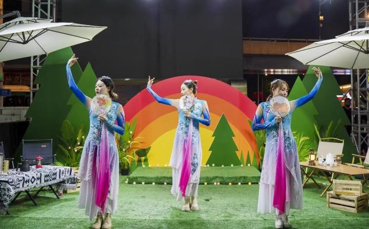 夜幕降临,韩国周美食节在热力的舞蹈表演中拉开序幕,民族舞、朝国街舞、现代舞、韩流乐队等交替上演,双语歌曲轮番奉送,身穿韩服的巡游队伍,穿越西塔大街小巷,展示西塔地区文化特色,为西塔群众带来沉浸式韩国周美食节享受。