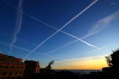 飞机在高空飞过后边跟着一条长长的“尾巴”这就是人们俗称的“飞机云”