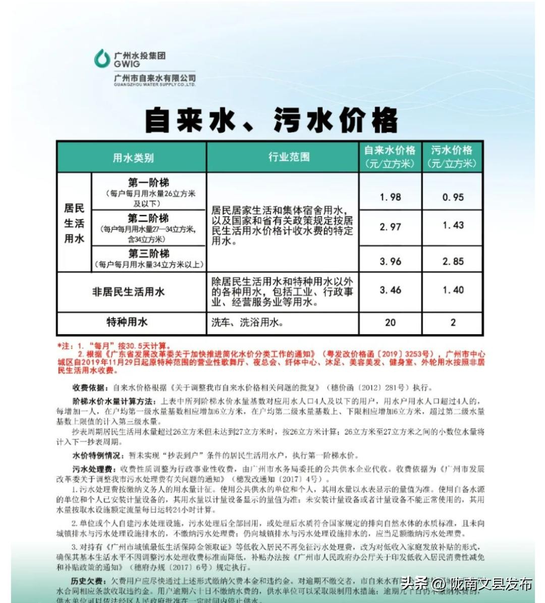 广东省居民自来水、污水