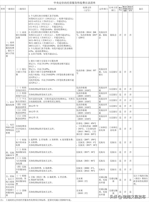 商业银行基础服务收费、银行卡刷卡手续费征信服务收费电信网和互联网网间结算费民航垄断环节服务收费沿海、长江干线主要港口及其他所有对外开放港口的服务收费