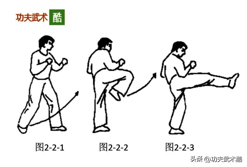 3、腓侧撩踢:用小腿外侧撩踢。这是正宗南派武术的踢腿技法。主要在近距离格斗中使用(图1-3)。