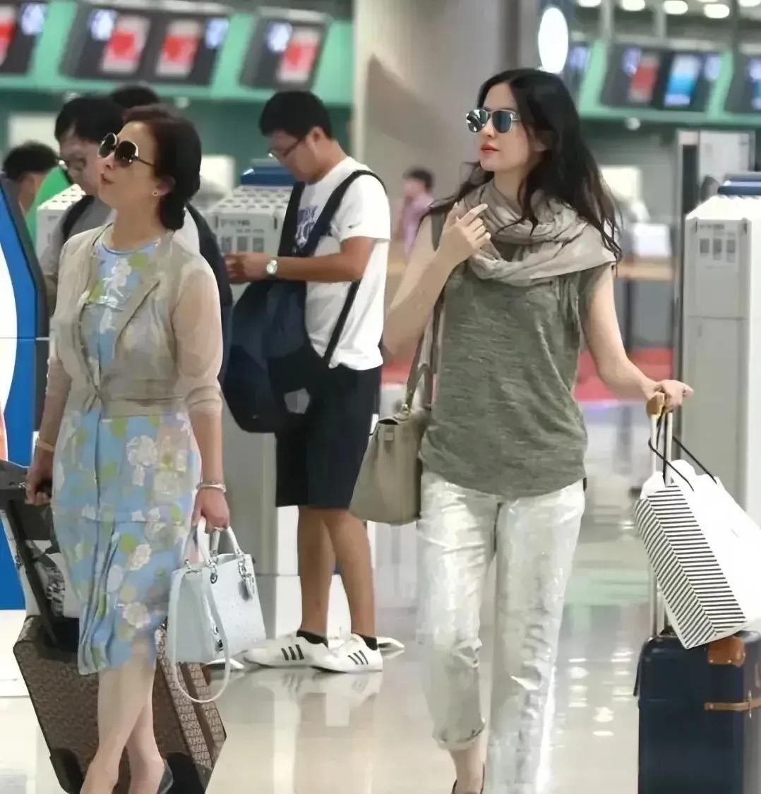 刘亦菲母女机场偶遇,美丽基因引全网热议!